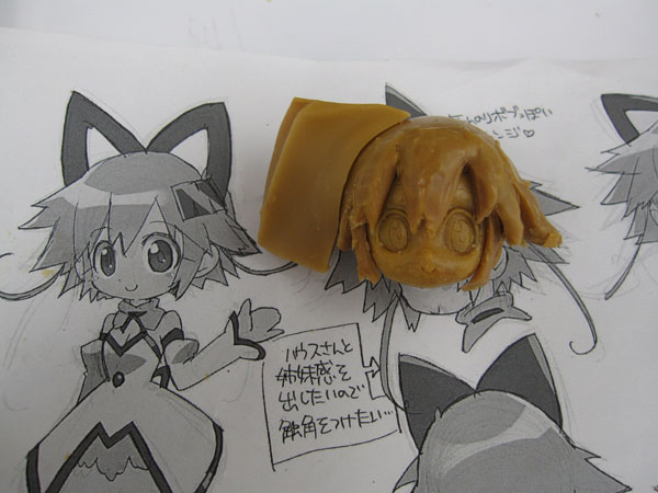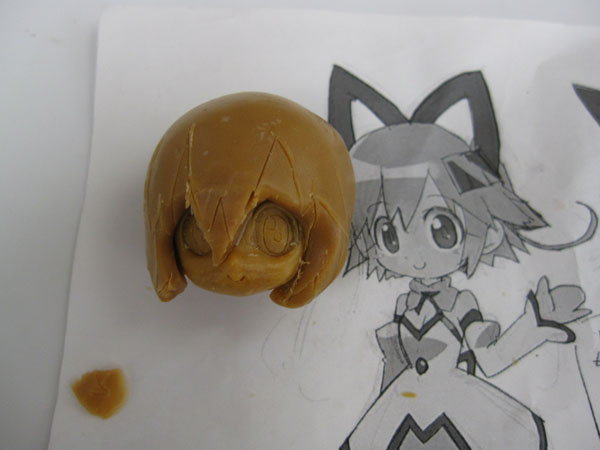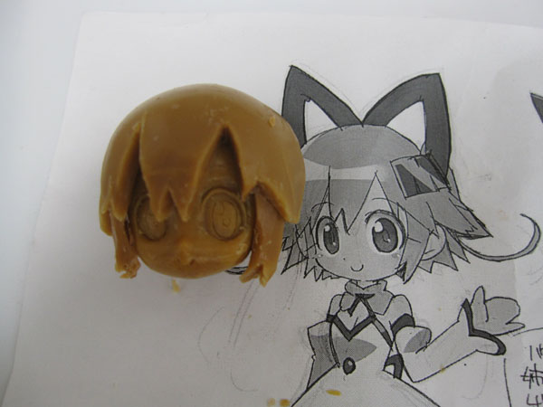 とりま温めたワックス板を頭部パーツにぐいっと押し付けてやります。