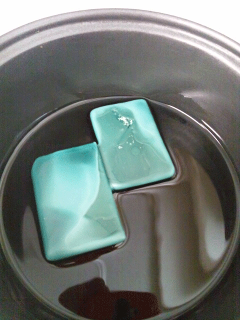 これをまた100均で売ってるポリの容器(小物入れ?)に注いで冷やして固めたのがこちら。