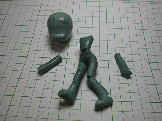 出来た素体を温蔵庫で温めて柔らかくしたら曲げたい方向と逆に切れ目をいれて、ポーズに従って曲げてやります。