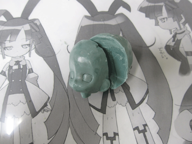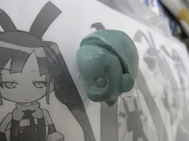 前髪パーツの厚みを考えて、顔側の頭部を削り込みます。