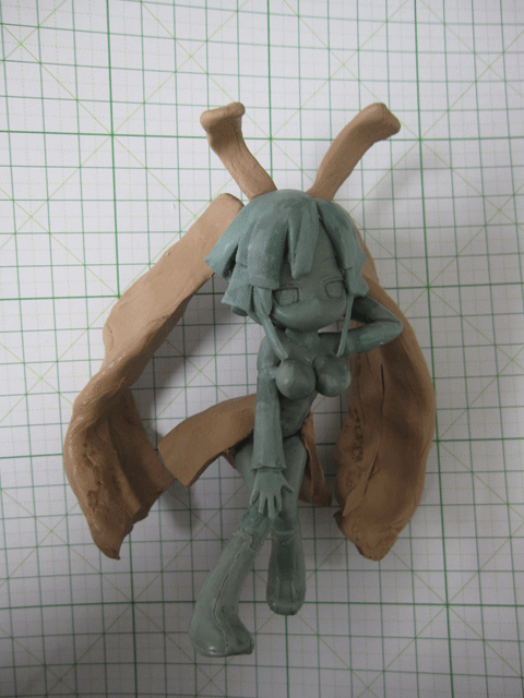 ここでシルエット的に足りない部分を粘土で足してみてバランスを見てみましょうか。